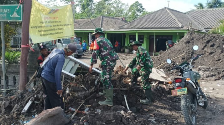 Lumajang – Upaya pemulihan pascaerupsi Gunung Semeru kembali diperkuat melalui aksi nyata para personel TNI yang tergabung dalam Kodim 0821 Lumajang dan Yonif 527/BY,