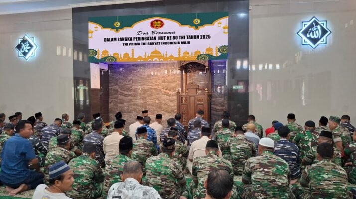 Banyuwangi, 4 Oktober 2025 – Dalam rangka memperingati Dirgahayu Tentara Nasional Indonesia (TNI) ke-80, anggota Kodim 0825/Banyuwangi melaksanakan doa bersama di Masjid A. Yani,