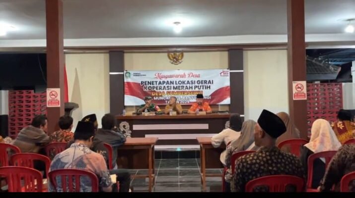 Muncar – Pemerintah Desa Sumber Sewu, Kecamatan Muncar, menggelar Musyawarah Desa (Musdes) Penetapan Lokasi Gerai Koperasi Desa Keluarga Merah Putih (KDKMP) pada Senin malam,