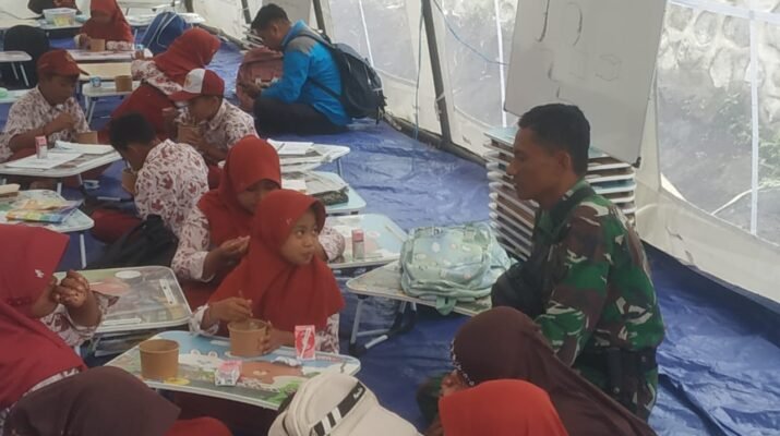 LUMAJANG – Di tengah keterbatasan fasilitas pasca-bencana, upaya memulihkan kondisi psikologis anak-anak terdampak erupsi Gunung Semeru terus digencarkan. Anggota Kodim 0821 Lumajang, Sertu Ely