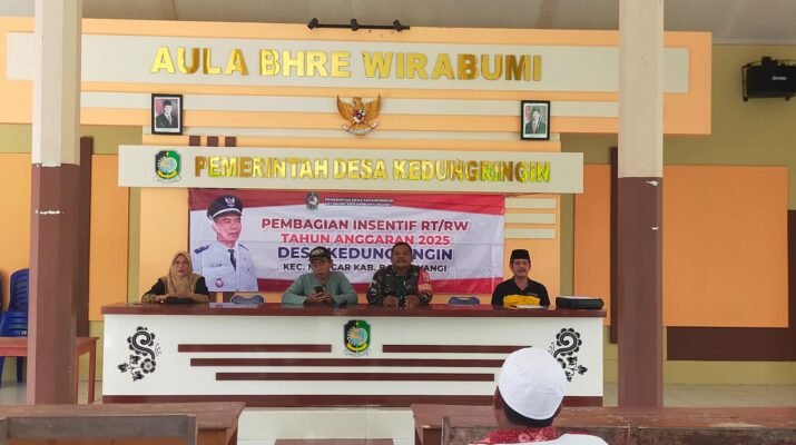 Muncar, Banyuwangi — Pemerintah Desa Kedungringin melaksanakan kegiatan pembagian intensif RT/RW periode Oktober hingga Desember 2025 pada Jumat, 5 Desember 2025, bertempat di Aula
