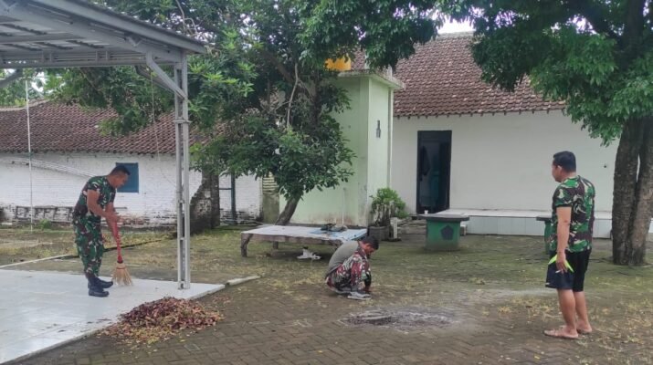 Muncar, Banyuwangi – Dalam rangka menjaga kebersihan dan kerapian lingkungan kerja, personel Koramil 0825/17 Muncar melaksanakan kegiatan kurve pembersihan satuan, Senin 12-01-2026. Kegiatan ini