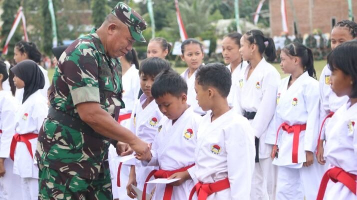 Banyuwangi – Inspektur Daerah Militer (Irdam) V/Brawijaya Brigjen TNI Ramli, SE, memberikan apresiasi kepada para atlet karate binaan Kodim 0825/Banyuwangi pada Kamis (21/8/2025). Pemberian