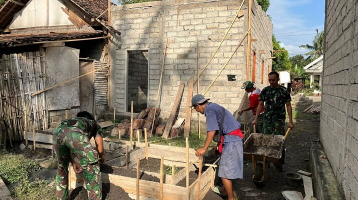 Banyuwangi – Anggota Kodim 0825/Banyuwangi bersama masyarakat setempat melaksanakan kegiatan Karya Bakti berupa pembangunan rumah milik warga di Desa Siliragung, Kecamatan Siliragung, Banyuwangi. Kegiatan