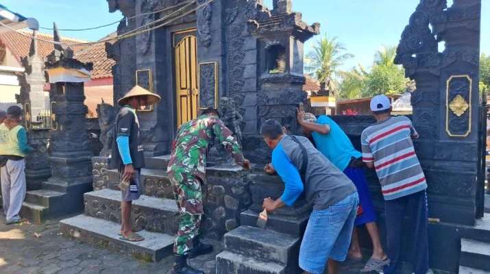 Merajut Kebersamaan Di Desa Siliragung: Satgas TMMD Ke-125 Dan Warga Bersatu Mengecat Pura, Simbol Kuat Toleransi Beragama