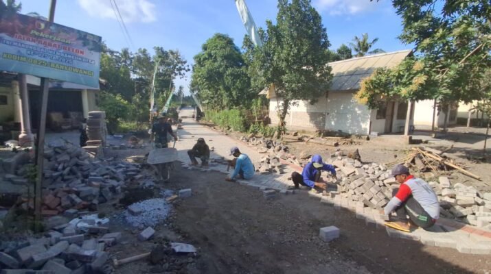 Banyuwangi – Satgas TNI Manunggal Membangun Desa (TMMD) ke-125 Kodim 0825/Banyuwangi terus melanjutkan pengerjaan paving jalan menuju jembatan penghubung di wilayah Kecamatan Siliragung, Kamis