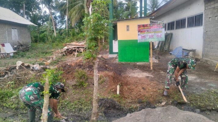 Anggota Satgas TMMD Lakukan Pembersihan di Sekitar Sumur Bor dan MCK