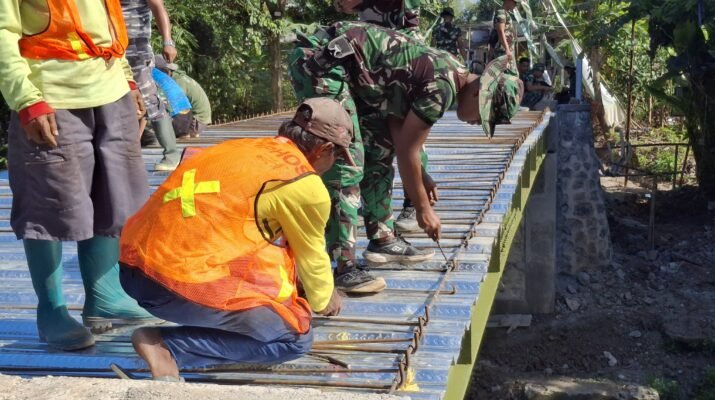 Banyuwangi – Pembangunan sasaran fisik berupa jembatan dalam program TNI Manunggal Membangun Desa (TMMD) ke-125 Kodim 0825/Banyuwangi mulai menunjukkan hasil yang signifikan. Proyek