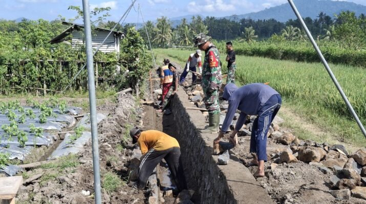 BANYUWANGI – Semangat gotong royong antara Tentara Nasional Indonesia (TNI) dan masyarakat terus membara di Desa Kesilir, Kecamatan Siliragung, Banyuwangi. Satuan Tugas (Satgas)