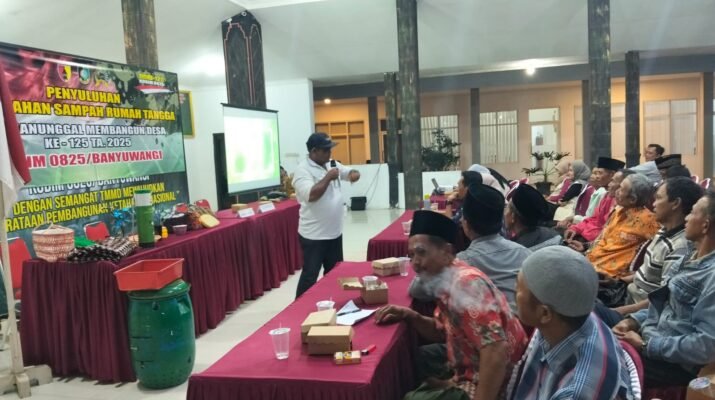 BANYUWANGI – Satgas TNI Manunggal Membangun Desa (TMMD) Ke-125 Kodim 0825/Banyuwangi melaksanakan kegiatan penyuluhan pengolahan sampah rumah tangga di Desa Kesilir, Kecamatan Siliragung, Kabupaten