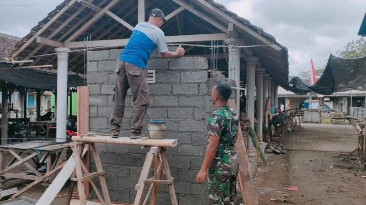 BANYUWANGI – Satgas TNI Manunggal Membangun Desa (TMMD) ke-125 Kodim 0825/Banyuwangi membangun fasilitas mandi, cuci, kakus (MCK) di pasar tradisional wilayah Kecamatan Siliragung, Kabupaten