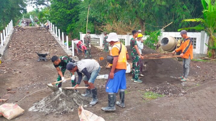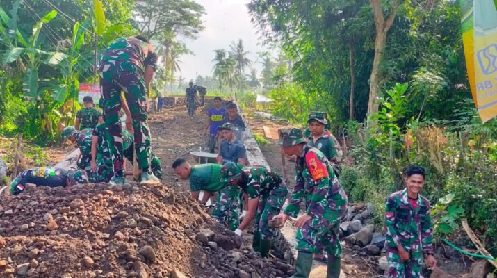 Banyuwangi – Semangat kebersamaan dan gotong royong kembali terlihat dalam kegiatan Tentara Manunggal Membangun Desa (TMMD) ke-125 Tahun 2025 Kodim 0825/Banyuwangi. Tampak prajurit TNI
