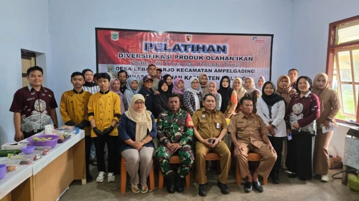 Dalam rangka kegiatan TNI Manunggal Membangun Desa (TMMD) Ke-126 Kodim 0818/Malang-Batu, Dinas Perikanan Kabupaten Malang turut berperan aktif melalui kegiatan Pelatihan Diversifikasi Produk Olahan Ikan yang dilaksanakan di Aula Desa Lebakharjo, Kecamatan Ampelgading, Kabupaten Malang.