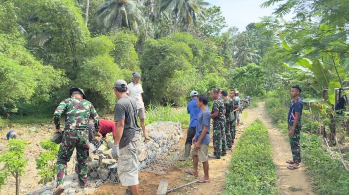 Pemasangan Bronjong Satgas TMMD 126 Perkuat Bantaran Sungai Lebakharjo Cegah Banjir