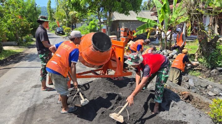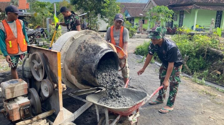 Keringat dan Semangat Gotong Royong Satukan Prajurit dan Warga Krajan 1A, Akses Desa Kian Terbuka.